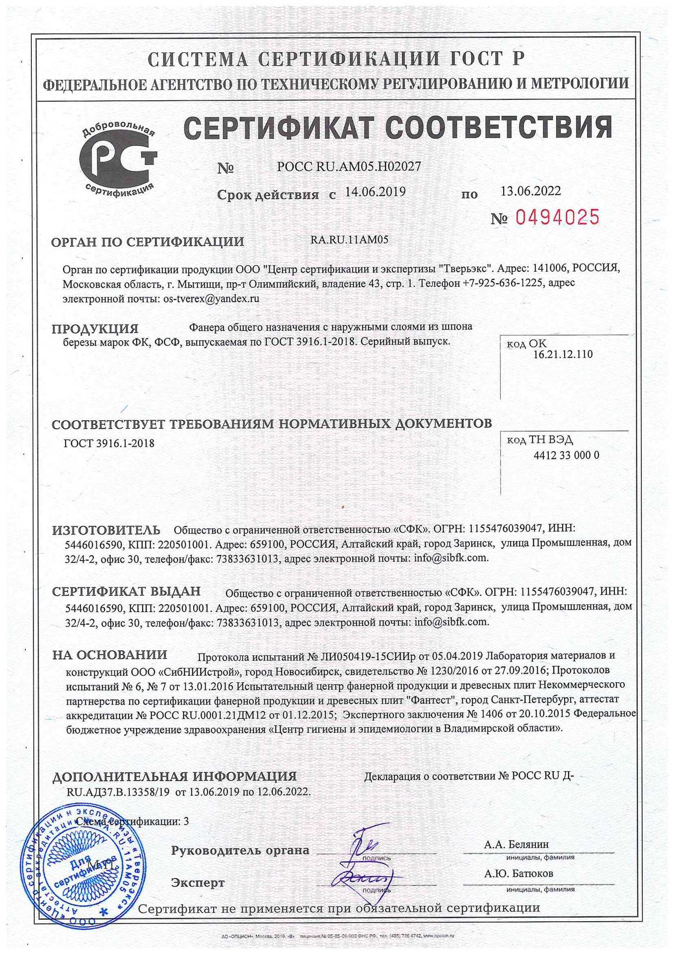 Подтвержденное сертификатами и действующими ГОСТ